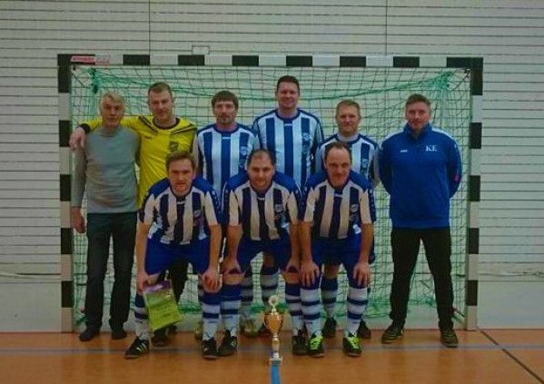 Die Geschichte wiederholt sich! Wie schon im letzten Jahr gewinnen die Alten Herren des SV Empor Walschleben die Futsal-Endrunde und dürfen kommende Woche zu den Thüringer Hallenmeisterschaften nach Leinefelde fahren. Doch das kommt nicht von ungefähr. Auch in den Vorjahren sowie beim Silvestercup in Gebesee stellte man seine Filigrantechnik im Umgang mit dem runden Leder auf Parkettboden unter Beweis. Am heutigen Sonntag-Nachmittag reichte im vierten Gruppenspiel ein Remis um keine Zweifel am Turniersieg zu lassen. So schlossen unsere "Oldies", betreut von Kai Ehrich, neben 10 eingetüten Punkten auch mit den meisten geschossenen Toren (13) und den wenigsten Gegentoren (5) als Erster ab. Der Offensivmotor brauchte unterdessen nicht lange um warm zu werden. Nach einem 3:1 zum Auftakt gegen Kerspleben spielte man sich gegen Büßleben (5:1) in einen Torrausch. Auch das 4:2 gegen Schlusslicht Gispersleben machte deutlich, dass man nicht vom spielerischen, sondern auch vom Willen her, die Landesmeisterschaft fest im Visier hat. Das 1:1 gegen die Lache war dann noch mehr oder weniger Schaulaufen. Wir sind stolz auf euch und freuen uns über die Qualifikation zum Landesausscheid!