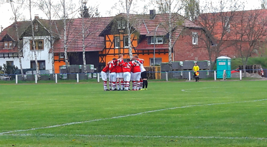Vom Start weg inspirierten beide mit schönem Vertikalspiel. Bereits nach vier Minuten hätte Schenke mit einem Drehschuss an die Latte beinahe das Momentum auf seiner Seite gehabt. Doch auch unsere Kicker zeigten mit zunehmender Spielzeit, dass sie gefällig nach vorn spielen können. Kevin Köllner fehlte nach einem Querpass von der Grundlinie noch das Abschlussglück. Auch Robert Fischer fand im Gewühl in Thomas Fischer seinen Meister. Mindestens genauso gut hielt auf der anderen Seite unser Schlussmann Jens Schuchardt, der einige Male mit starken Reflexen Angriffe über die flinken Spitzen Schönherr und Schenke vereitelte. In einem eigentlich leicht zu leitenden Spiel verlor Schiri Geburtig seine Linie. Im Strafraum wollte Niels Hucke nach innen ziehen, wurde klar von den Beinen geholt, doch der Pfiff blieb zum allgemeinen Unmut aus. Als sich die Mehrheit der Zuschauer wieder beruhigt und sich schon mit einem torlosen Pausenstand angefreundet hatte, zeigte Robert Fischer, dass auch ruhende Bälle ein Erfolgsrezept sein können um Spiele in der Kreisoberliga zu unseren Gunsten zu entscheiden. Einen schön gezirkelten Ehrich-Freistoß nickte er am ersten Pfosten trocken in den Winkel. Danach war Pause.